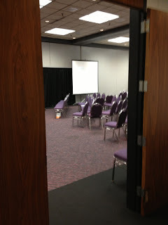 And then, disaster struck. Maybe because I fraternized with the dark forces too much, I don't know. I went looking for the presentation rooms for listed events. I got lost. I got very lost. I got so lost I wandered into a basketball convention. That would be lost enough, but it was an EMPTY basketball convention.