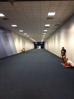 An easel and room schedule informs me that this is not an empty basketball convention. It's an empty gymnastics convention. Sure, that makes much more sense.