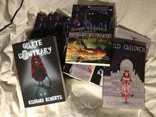 For those of you new to my writing, Sweet Dreams Are Made Of Teeth is a coming of age story set entirely in the world of dreams, starring a nightmare and his confusing romantic entanglements. Quite Contrary is a very dark, not-quite-horror novel about a little girl whose life was pretty bad before she got stuck in the story of Red Riding Hood, but who is tough enough to survive even a serial-killer wolf. Wild Children, the book about tweens cursed for being bad to look and be treated like animals, does not have paper copies yet. I'm trying to find out why.