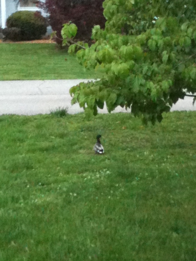 In other avian news, I think ducks read my blog, and they're not happy about my descriptions of their demeanor. The fellow pictured below now lives on my front lawn. I look out the window, and there's this duck, watching me. Front lawns are not normal nesting sites for mallards that I'm aware, but he's sticking around.
