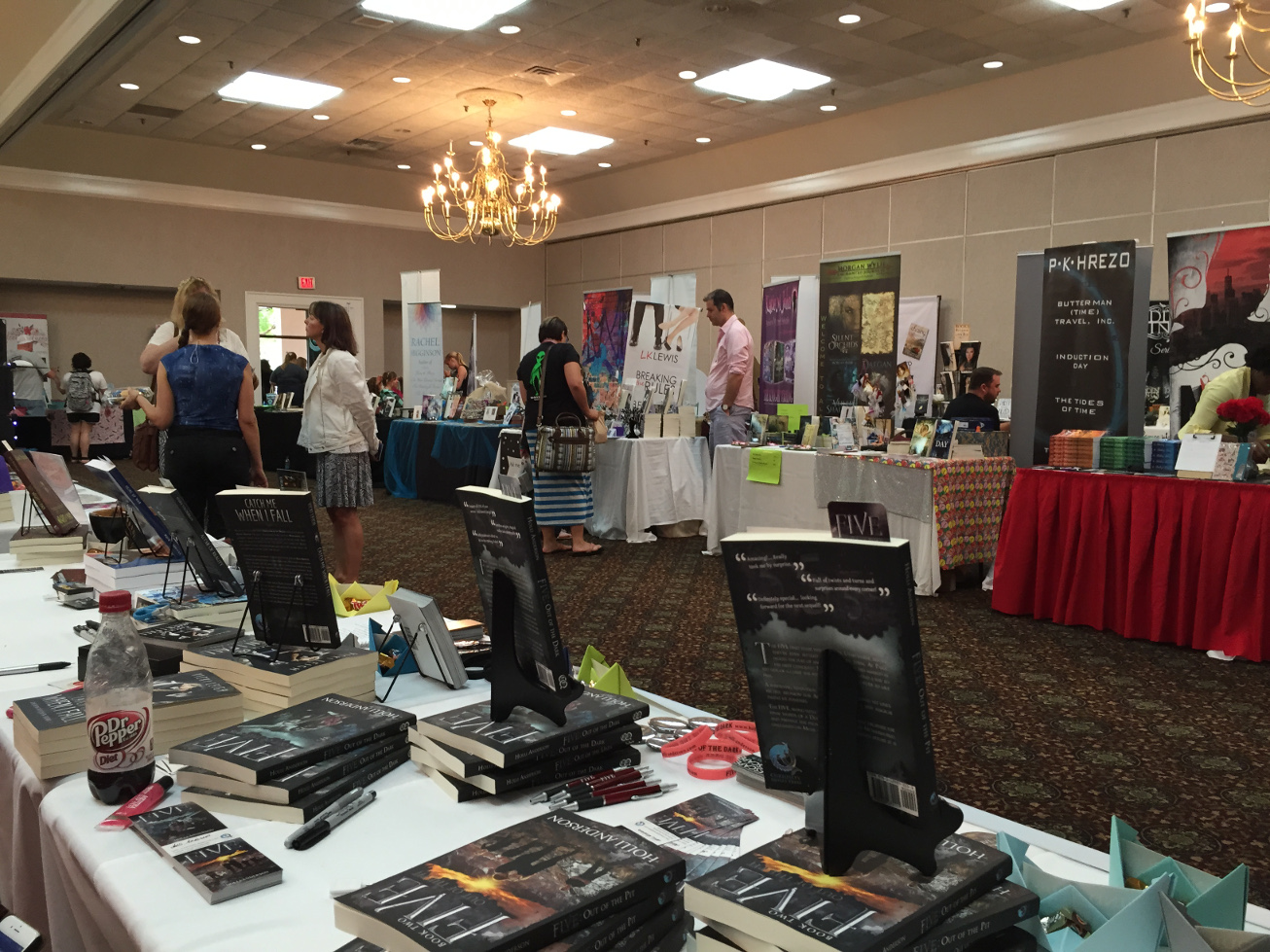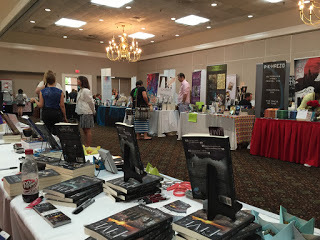 Here's the Curiosity Quills table in the dealer's room at UtopYA. I spent most of Thursday and Friday there. What do you not see in this picture? CUSTOMERS. The con was practically deserted.