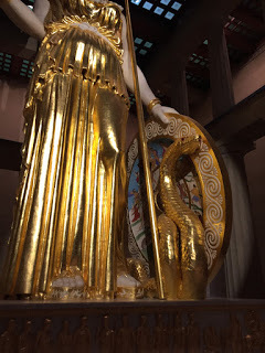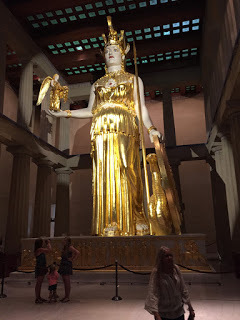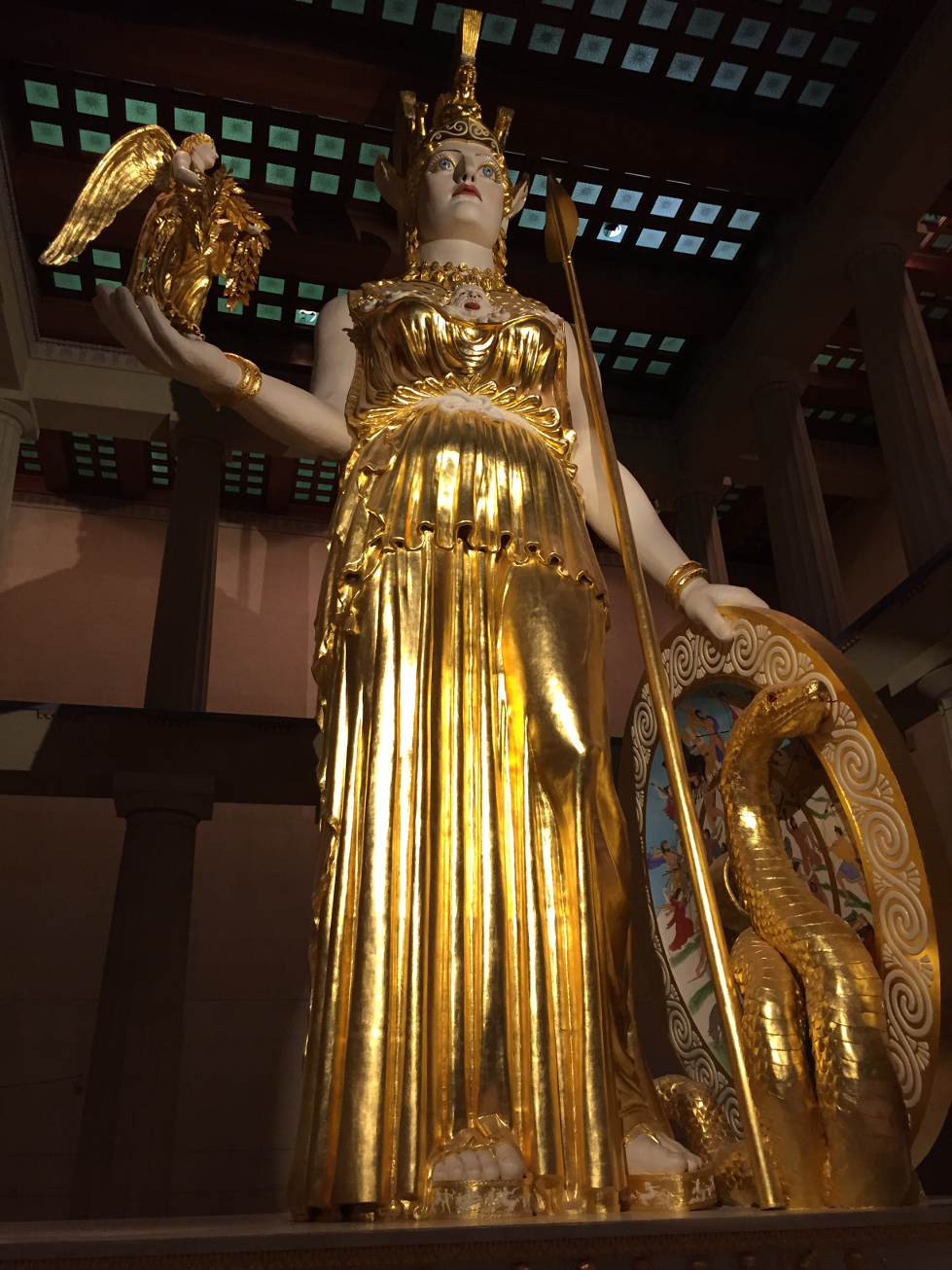 Not kidding about the statue. Nashville has a life size replica of the Parthenon, including a reproduction of the lost statue of Athena. The gold leaf is real. The ivory is not.