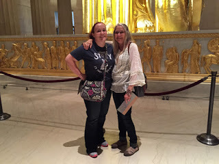 So, there was no business Thursday, and a few people Friday who told us what everyone says at cons - that they would be back to buy on Saturday. That's how it always works at conventions. Well... UtopYA, in its infinite wisdom, closed the dealer's room on Saturday. That left us CQ authors up a creek, and I went sightseeing with Vicki Leigh and Gail Strickland (the two most awesome women in the universe, by the way*) in Nashville. This is them, posing beneath a gigantic gold-leaf statue of Athena.