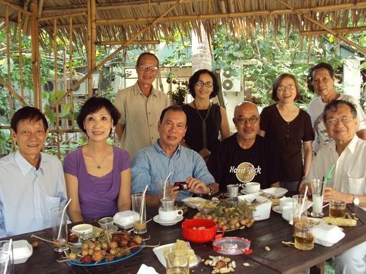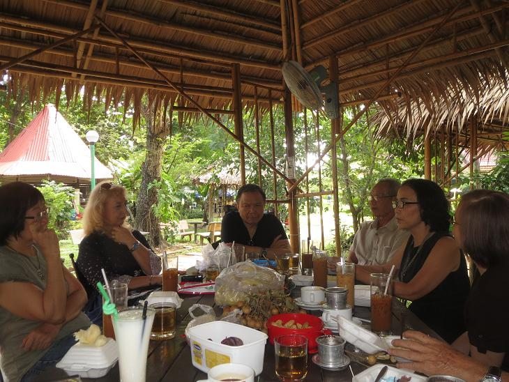 Sáng Chủ nhật, 22.11.15 mình đến sớm để giữ chỗ, giữ cái chòi tranh bên bờ suối, trong khi Kim Quy và Lê Ký Thương lo khoai, bắp, đâu phọng luộc còn Ngọc Vân và Chí thì lo xôi vò! Vậy là quá đủ cho một buổi họp mặt cuối năm của “Gánh hát” và bạn bè. Thân Trọng Minh đưa Hoàng Quốc Bảo tới, Trương Văn Dân với Elena, rồi Châu Văn Thuận. Dĩ nhiên Thu Vàng và Nguyệt Mai đã đến từ sớm.