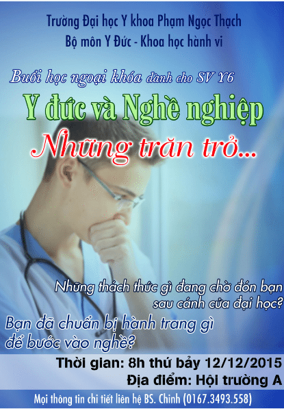 Em nghĩ nên đề cập thêm đến những trường hợp thiết thực hay gặp (có thể vi phạm y đức), rồi mọi người cùng thảo luận xem nếu trong trường hợp đó thì chúng ta nên làm gì là tốt nhất đề 2 bên cùng chia sẻ, thông cảm, thấu hiểu hơn, thậm chí là sẽ động viên tinh thần lẫn nhau, sinh viên khi ra trường gặp những hoàn cảnh tương tự cũng có hướng cho mình chứ không hẳn sẽ bị “đẩy đưa”. E nghĩ y1 là cần thiết học y đức, các năm giữa thì có những buổi nói chuyện (nên bắt buộc, nếu không khó lòng sinh viên sẽ tham gia) về các vấn đề thiết thực và năm cuối sẽ nói lại lần nữa vì em nghĩ đây là vấn đề không phải 1 sớm 1 chiều mà cân sự tác động liên tục.