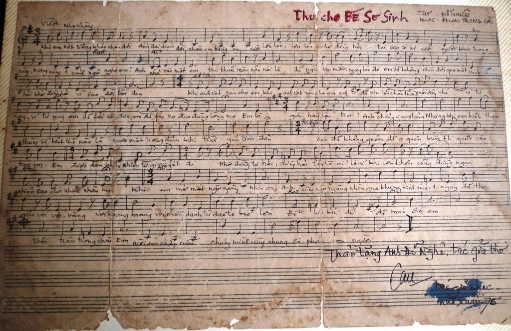 Dưới đây là bản nhạc viết tay của Phạm Trọng Cầu (1973):