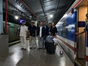 Còn gì vui hơn cả bọn chen chúc vào cùng một phòng trong toa, mặc sức… mà ăn uống và trò chuyện ầm ỉ cũng không sợ làm phiền ai, vì xe chạy ầm ầm… Nhìn cảnh hai bên đường hết sức thú vị. Đi ngang Phan Thiết (Bình Thuận) đã vào đêm, đèn sáng rực hai bên đường từ những vườn thành long tội nghiệp! Tội nghiệp vì thanh long… tưởng mặt trời đang mọc, bèn ráng sức ra trái, ra hoa… !