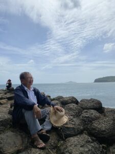 Nói chuyện suốt đêm không chợp mắt nổi. Tuổi già, mình đành uống chút thuốc ngủ… nên ngủ được chừng 5 phút! Sáng rồi. Ga Tuy Hoà đây rồi. Thầy Thiện Đạo đã cho xe đón, đưa về Ks Hùng Vương, trung tâm Tuy Hoà, cách biển không xa. Mới mấy năm không về, Tuy Hoà khang trang, rộng rải, khác lạ. Buổi Lễ Thich Ca thành đạo tại Chùa Phi Lai khá đông Phật tử gần xa. Mình được đề nghị phát biểu. Thầy Thiện Đạo trụ trì trang trọng giới thiệu – mà thiệt ra nhiều người cũng không đã quen biết từ lâu qua sách báo, clip học Phật ở Chùa Xá Lợi Saigon. Mình chỉ nói chút xíu về “Tại sao tôi học Phật?” là đã thấy đủ. Chủ yếu là nhờ thầy giới thiệu cho vài “thổ địa” dẫn đi đây đó cho biết Phú Yên, Tuy Hoà ngày nay, so với 15 năm trước mình từng ghé đến. Nhớ một câu ca dao cũ: Đa tình con mắt Phú Yên/ Đồng Nai đi cưới một thiên mắm mòi/ Hổng tin giở hộp ra coi/ Rau răm ở dưới mắm mòi ở trên… Bây giờ có câu: Cá mòi “Phan Thiết/ Sò huyết Ô Loan”… Phú Yên là vựa lúa miền Trung, có đầm Ô Loan, có vịnh Xuân Đài, có hàu, có tôm hùm, có chè, có bánh canh, có bún chả cá, có bánh hỏi lòng (!)… Có Cafe Tùng nổi tiếng, dựa vào bờ núi Nhạn, có tháp nhạn, có Đập Đồng Cam, có Gành Đá Đĩa có Nhà thờ Mằng Lăng, Chùa Đá Trắng, chùa Hội Tôn, cầu gỗ Ông Cọp… đặc biệt, có Nghinh Phong hứng gió lộng mười phương.