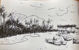 Sáng 1.1.2024, về Lagi, ghé “Suối Đó Chùa Đây” thăm Thầy Thích Tấn Tuệ, nhà thơ Đinh Hồi Tưởng. Quen thầy đã lâu, có hơn 30 năm trước, khi thầy mới đến Lagi, lập cái chùa lá bên dòng Suối Đó, một con suối khá đẹp ngay trên đường chính vào Lagi.