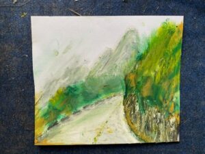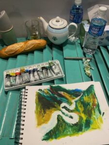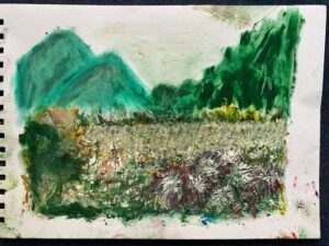 Cao hứng, bày đặt vẽ… vời nữa chớ! Mua hộp sơn dầu (thứ của trẻ con), rồi lấy ngón tay quẹt quẹt, bôi bôi, trét trét một lúc là xong một bức tranh… “trời ơi” ngay! Các bạn hoạ sĩ thứ thiệt của mình đừng la rầy chi nhe.