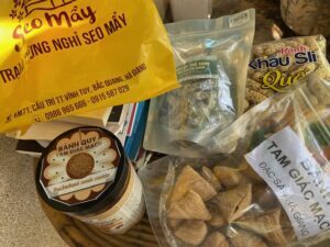 Mình bèn tặng bà cuốn Bản thảo: “Một ngày kia… đến bờ” và bà không quên tặng lại một gói Cốm Vòng thiệt to! Vậy đó.