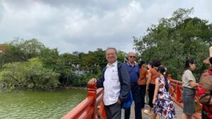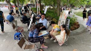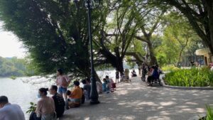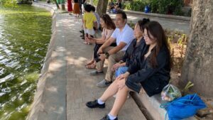 Đến Hà Nội đã gần nửa đêm. Oải, rả rời. Thế mới biết “già mà ham” leo đồi leo núi ỏ Cao Nguyên Đá cho đã đời là vậy! Tuy vậy, sáng Chủ nhật 5.11.23 khi nghe tiếng chuông Nhà thờ lớn đổ lúc 6h30, cũng vội vả đến Nhà Thờ lớn thăm chút, rồi ghé Chùa Bà Đá cũng gần đó. Thả dọc ra bờ hồ Hoàn Kiếm. Đã nhộn nhịp. Quán cafe Lạc Thuỳ ở bờ hồ đã đông đúc. Vài bà đẩy xe bán bánh cam, cốm vòng… và những cô nàng quang gánh cốm vòng mùa thu đợi khách như cái thuở trong tiểu thuyết của Hà nội 36 phố phường quen thuộc ngày xưa… nhờ đọc Tự lực văn đoàn hồi còn nhỏ! Gởi bạn vài hình ảnh sinh hoạt coi vui nhe.