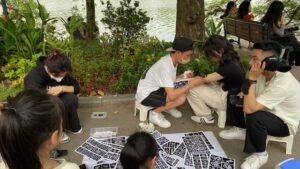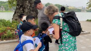 Các bé thực hành tiếng Anh với du khách nước ngoài