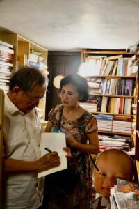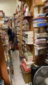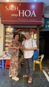 Mình đến phố Đinh Lễ, khu sách cổ (thiệt ra sách loại nào cũng có!) tình cờ bước vào Sách Mụ Hoa. Sách chồng chất từ sàn nhà lên tới nóc, chừa lối đi hẹp lé, mua cuốn nào trên cao thì nữ gia chủ trèo thang lên lấy, đúng ngay cuốn đó! Giỏi thiệt!