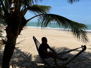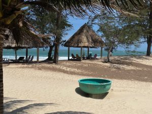 Nghe nói có đường cao tốc mới từ Sai Gòn về Phan Thiết đi chỉ mất 2 tiếng thay vì 4, 5 tiếng như trước, tôi quyết định “trải nghiệm” cho biết. Chọn ngày Lễ 1/5 cho vắng xe. Quả thật, khởi hành từ nhà mình ở Bàn Cờ lúc 5.15 h sáng thì 7.15 h đã đến Phan Thiết. Cà phê, ăn sáng ở một quán bãi biển rợp bóng dừa quen thuộc xong, chạy vòng ra Mũi Né thăm Đá Ông Địa một chút, rồi trưa về lại Tân Hải ( Tam Tân) quê Ngoại ở La Gi (là quê của cậu Ngu Í Nguyễn Hữu Ngư, cậu Lê Phương Chi… và những ông cậu khác của mình như cậu Năm Nghê Nhã Ý, cậu Năm Bánh…- nay chẳng còn ai!). Mùa này biển rất đẹp. Ngày hôm sau về Lagi farmstay, nơi yên ả, từ đó ra bãi biển Cocobeach để đi… xe bò thăm Chợ Cam Bình nhộn nhịp…!
