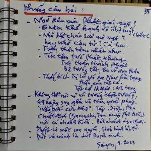 Hôm đó, mình cũng đã chuẩn bị một ít điều để trình bày với các bạn trong Gia đình Hoa Sen ở Đà Lạt (9.4.2023) về quá trình học Phật của mình để chia sẻ kinh nghiệm nhưng thời gian cập rập quá nên phải hẹn lại một dịp khác, dù Thuần Nhiên và Thảo Nhiên cũng đã chuẩn bị cho một Flipchart sẵn sàng. Xịn được chia sẻ vài hình ảnh cô đọng nơi đây.
