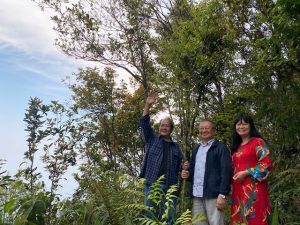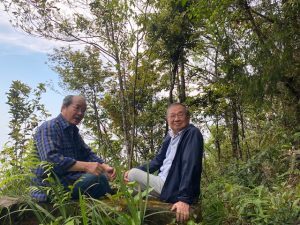 Võ sư Nguyễn Văn Dũng và Đỗ Hồng Ngọc bên gốc anh đào. (Bạch Mã, 20.3.2023)