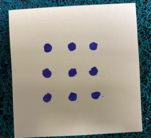 Để tạo không khí thoải mái cho buổi học, tạo sự tham gia tích cực… cho lớp (vốn thường chỉ tiếp thu thụ động), mình vẽ lên bảng 9 điểm thế này rồi đưa ra một câu đố: Hãy kẻ 4 đường thẳng- và chỉ 4 đường mà thôi- không được nhắc viết lên- nối được cả 9 điểm này lại với nhau?