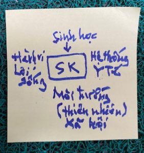 Yếu tố sinh học (Di truyền, gen, tâm thần…); Yếu tố Môi trường (sinh vật, vi sinh…)- bao gồm cả môi trường thiên nhiên và môi trường xã hội; Yếu tố hành vi lối sống cá nhân; Yếu tố: Hệ thống Y tế, chăm sóc bảo vệ sức khỏe… Vai trò của Phật giáo trên mỗi yếu tố này ra sao? Sự tham gia của các vị trong đời sống xã hội, trong phòng chống dịch bệnh, bảo vệ môi trường, cụ thể như dịch Covid, Sốt xuất huyết, sốt rét… Vấn đề dinh dưỡng, các bệnh dịch mạn tính không lây hiện nay… như “3 cao 1 thấp” (cao đường, cao mỡ, cao máu và… thấp khớp) gặp không ít trong giới tu sĩ.