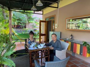 Cho nên về thì ở vài ngày nơi Lagi Farmstay mới thấy quen thuộc, có canh chua lá me, có cá đục kho keo, có tôm rim mặn… Biển thì ra Cocobeach camp gần đó, có xe bò… chở đi mua hải sản ở chợ Cam Bình. Từ bải đá Cam Bình nhìn lên Hòn Bà tuyệt đẹp dưới ánh nắng chiều…