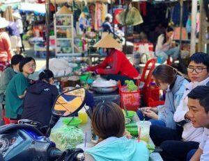 Chẳng ở đâu xa, chợ như ngôi nhà chung mọi người gặp gỡ thăm hỏi chuyện trò tự nhiên nhất quả đất. Chẳng cần trà bánh, chẳng cần câu nệ vỗ vai nhau cái bốp “Mới về hả?”; Thế là buổi đi ăn hàng khỏi đường về luôn.