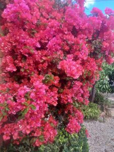 Trước nhà có khóm bông giấy đỏ. Hè về bông đỏ nở rực như phượng vĩ nơi quê hương thứ nhất. Chốn nầy, trời thường mát và lạnh, đâu đủ ấm nóng để trồng phượng vĩ, dù có lúc cũng nóng và ve kêu inh ỏi. Bông giấy nở rộ cũng đúng lúc mùa hè và mùa học sinh nghỉ hè vài tháng từ lúc gần Giáng sinh và đầu năm mới. Bông giấy đỏ nở rộ nhắc đến mùa phượng vĩ thời học trò. Màu đỏ rực là màu tươi vui của xác pháo lúc Tết, của ngày đám cưới, của bao giấy đựng tiền lì xì mà cũng là màu đỏ của máu, của đau đớn, khổ sở, chia ly vì chiến tranh, tai nạn và bệnh hoạn…Màu đỏ của than, của lửa cho cái ấm, cái no sau bữa ăn, của mặt trời đem cái sáng, cái ấm, cùng cái nóng bức.