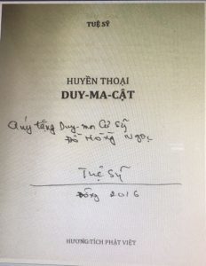 Rồi nữa Anh chọn kinh Duy Ma Cật để thống nhất Đạo – Đời để xây cầu Bất nhị để thấy đời không chỉ khổ đau mà còn phúc lạc để thấy cõi Phật đâu xa …