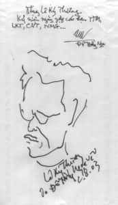 Tôi liên tưởng đến “Niêm hoa vi tiếu” của Đức Phật Thích Ca và nụ cười của thị giả Ca-Diếp. Cũng chính vì điều này mà tôi đã bỏ bài “Đôi Điều Cảm Nhận Về Lê Ký Thương” vì thấy cần để Anh yên lặng và mỉm cười thôi.