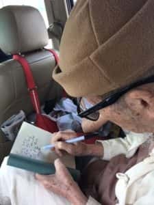 Ông già 91 tuổi ngồi trên xe hơi đang chạy mà vừa viết vừa đọc ngon lành, thiệt là đáng nể phục.