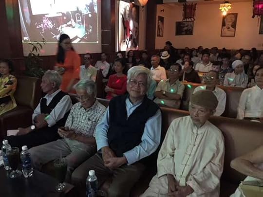 Anh Trụ Vũ, bị tai biến 3 năm trước mà nay đã đi lại được, nói năng hơi khó, nghe càng khó. Thiên Anh con gái, kề tai anh… phiên dịch những gì cần thiết cho nghe. Vậy mà trên chuyến xe, anh còn viết thơ Nhất Hạnh tặng cho Bs Thành, bàn về thơ Phạm Thiên Thư, đọc cuốn sách mình mới tặng Như không thôi đi được (Những bài viết về thơ Đỗ Hồng Ngọc)… Anh mở đọc ngay bài Nguyễn Thị Khánh Minh, bài Nguyễn Thị Tịnh Thy v.v… Thiệt không ngờ một ông lão trên 90! Hình như nhờ có thơ có văn mà người ta hạnh phúc vậy. Những lúc yên lặng, thấy ông quơ quơ tay lên không thì Linh Thoại giải thích Ba đang làm thơ hoặc viết thư pháp đó chú Ngọc ạ.