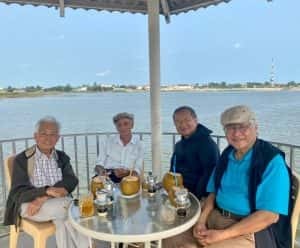 Phải nói buổi Họp mặt mừng tuổi Trụ Vũ thiệt vui và thiệt cảm động. Anh Trụ Vũ hơn mình có 9 tuổi, Đoàn Văn Điện hơn mình 4 tuổi (xưng tên anh là “Điên nặng”, dân gốc Tuy Hòa, bạn của Trần Huiền Ân và thế nào cũng họ hàng với Đoàn Hùng- nhà văn Nguyễn Lê Uyên). Bs Võ Văn Thành thì tuồi Sửu, nhỏ hơn mình… 9 tuổi, Hạnh Phương tuổi Tí… Khi người ta già thì người ta hay hỏi tuổi khi gặp nhau như vậy. Với mình, hỏi còn là để học tập kinh nghiệm sống, kinh nghiệm giữ gìn sức khỏe của nhau, chia sẻ về cái ăn, cái ngủ, cái tập rèn thể lực, tu tâm dưỡng tánh… Bs Thành thì thở bụng, Gs Điện thì ngàn cái phất tay dịch cân kinh… Đại khái vậy.