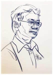 Khi mình đến nơi đã thấy có Lữ Kiều, Chu Trầm Nguyên Minh, Rừng, Nguyên Minh, Mang Viên Long. Lát sau có thêm Sâm Thương… cà nhắc tới. Lữ Kiều bảo cả nhóm ngồi đây đa số là thân chủ của bạn. Dĩ nhiên rồi, già thì bệnh, mà bệnh thì không khỏi “ba cao một thấp” (tiểu đường, huyết áp, tim mạch, thấp khớp…). Lữ Kiều là bác sĩ chuyên khoa tim mạch mà! Bản thân Lữ Kiều cũng phải mỗi ngày tự “harakiri” mấy chục đơn vị Insuline vào bụng! Họa sĩ Rừng cho biết sắp mở triển lãm, hẹn anh em đến Du Miên ngày khai mạc, café miễn phí! Ai cũng khâm phục Rừng về nhiều mặt không thể kể… hết. Chu Trầm Nguyên Minh lúc này phụ giúp Nguyên Minh làm tờ Quán Văn, đang chuẩn bị ra mắt số chủ đề sông Mường Mán (Phan Thiết) sau khi đã làm số về Sông Dinh và sông Seine.