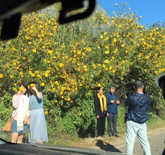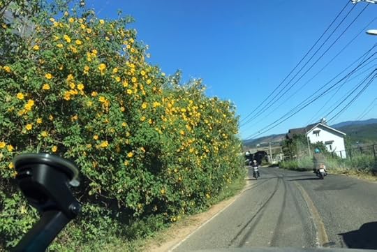 Rồi đi về phía Tây Nam hơn chục cây số, có đoạn đường dã quỳ tuyệt đẹp, thiên hạ xúm xít chụp hình bất kể xe cộ qua lại? Ở đó, có một quán cafe vườn cũng ngồ ngộ: