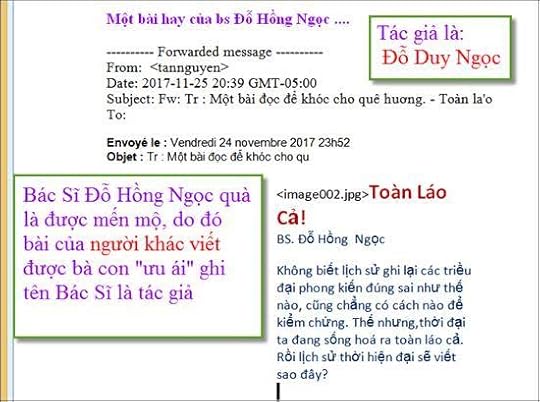 Hai hôm nay, nhiều bạn phone mình, nhiều bạn gởi meo kêu “thậm nguy” “chí nguy” vì có đã sự nhầm lẫn tai hại. Bởi lần này, để cho chắc ăn, người ta đã sửa lại tên Họa sĩ Đỗ Duy Ngọc thành “Bác sĩ” Đỗ Duy Ngọc và còn chèn thêm cái hình của mìh, Bs Đỗ Hồng Ngọc, như để xác tín! Một người bạn giáo sư có tuổi, nói “rõ ràng đây là hình của anh gắn trên bài viết sao anh còn chối không phải bài viết của anh”? Thật dễ thương! Thế hệ mình- trên dưới 80- vậy đó, tưởng cái gì cũng thật, quên rằng ta đang ở thời đại Post Truth, Fake News vô cùng “thú vị” hôm nay. Mình trả lời ông rằng vậy mình sẽ thay ngay tên ông là tác giả với cái hình của chính ông nhé, làm ông rất ngạc nhiên.