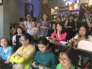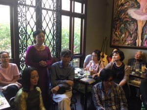 Buổi Giao lưu- Ra mắt sách “Biết Ơn Mình” của ĐHN do PNB và Hq Các bà mẹ tổ chức, 29.11.2019. Dịp này, nhạc sĩ Trần Văn Quang đã hát “Tạ Ơn” của Trịnh Công Sơn và một nữ khán giả (Thanh Hà) hát “Thơ tình cuối mùa thu” của Xuân Quỳnh/ Phan Huỳnh Điểu… “mùa thu vào hoa cúc/ chỉ còn anh và em/ là của mùa thu cũ…”. (ghi chú: MC Vũ Hồng Loan, áo đỏ)