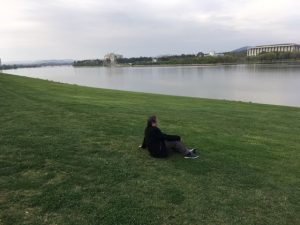 Ấn tượng nhất của mình ở Canberra đó là cái hồ nhân tạo mênh mông, tuyệt đẹp này. Đi lang thang trên bờ hồ bỗng nhớ quá Sông Hương. Nhớ Hoàng Nguyên. Nhớ một tà áo tím. Đành ngồi bệt xuống thôi và hít thở cái không khí trong lành cúa Canberra một buổi sáng mùa xuân sớm.
