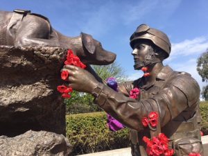 Mình ngồi quán cà phê trước Bảo Tàng Chiến Tranh. À, có cái tượng này hay nha. Một người lính đang thân mật trò chuyện cùng chú chó cưng. Như vậy tốt hơn.