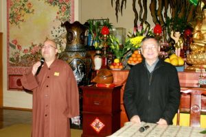 Thầy Thiện Tâm, trụ trì chùa Hoa Nghiêm với Đỗ Hồng Ngọc (trái). Melb 10.2019
