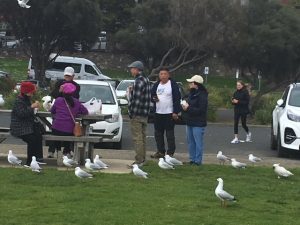 Vì thế, nhiều lúc mình chọn cách đến thăm bạn bè… đột xuất, để bạn không kịp vất vả vì chuyện bữa ăn. Rồi cũn có người nhắc nhỏ mình: tại anh mới đến Úc lần đầu, bạn bè em cháu học trò… lâu ngày không gặp, chớ anh thử ở lâu lâu coi! Có lý. Cũng không sao. Lúc đó, mình lên chùa, xếp hàng lãnh cơm chay ăn miễn phí, vẫn ngon lành như thường. Nhớ hôm xếp hàng lãnh cơm chay ở chùa, không biết sao có người nhận ra mình. Hai vợ chồng lịch sự đến chào hỏi, và xin phép chụp chung cái hình. Thì ra cũng tại mấy cái youtube, những bài mình “Talk” ở chùa Hoằng Pháp, chùa Khánh An, chùa Xá Lợi…
