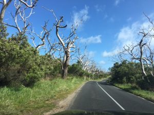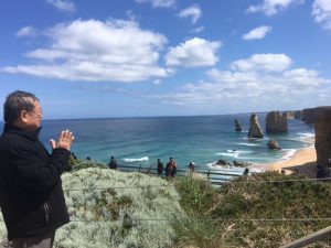 Ngày nay đây là con đường tuyệt đẹp có tên là Great Ocean Road với những bờ vực thăm thẳm… hằng năm thu hút nhiều triệu lượt người đến viếng thăm. Buổi sáng Thứ bảy 11.10.2019 nắng đẹp và gió lớn…, mình đã cùng anh chị Tuấn và Thành, Trang, Yến, con cậu Ba làm một “tour gia đình” đến tham quan nơi này…