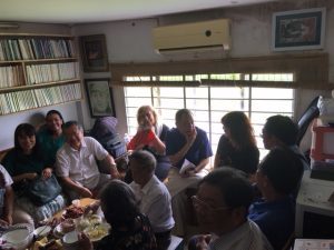 Lương Minh, Nguyễn An Bình, Đoàn văn Khánh đến, rồi anh Đỗ Hồng Ngọc cũng sang dù trưa nay anh bận một cuộc hẹn. Chỉ chưa đầy mười lăm phút sau phòng nhỏ đã chật chội tiếng cười vui của Anh Nguyên Minh&chị Lan, Vũ Trọng Quang&Quý, Trương văn Dân&Elena, Nguyên Cẩn&Ngọc Anh, Ngô Thị Mỹ Lệ&An, Đặng Châu Long&Hạnh, anh Đỗ Hồng Ngọc, Đoàn văn Khánh, Lương Minh, Hoàng Kim Oanh, Nguyễn An Bình, Quách Mạnh Kha, An Thảo, Quang Đặng, Trần Thị Trúc Hạ, Dung Thị Vân, Hoài Huyền Thanh, hai mươi ba người chen chúc chia nhau ngồi trong không gian 12 mét vuông. Nếu trừ đi không gian dành cho khu vực máy in, máy laptop và bàn thì mỗi người chỉ còn dưới nửa mét vuông. Chúng tôi đang cô đặc lại đến mức phải hạn chế từng động tác thừa. Chỉ có tiếng cười nói vô hạn định.