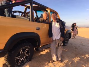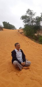 Nguyên Minh, “ông chủ” Quán Văn núp trong xe đặc chủng chưa dám bước ra, chụp một tấm hình kỷ niệm với ĐHN (Bàu Trắng, Bình Thuận 14.1.2019)