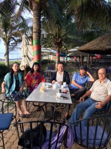 từ phải: Nguyễn Như Mây, Vũ Trọng Quang, Đỗ Hồng Ngọc, Nguyễn Thị Tịnh Thy, Chị Quý (vợ VTQ). Cafe Bãi biển Phan Thiết 16.1.2019
