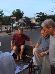 Dầu vậy, sáng sớm, mình và LKT ra ngồi cafe ngoài đường với nhà thơ Vũ Trọng Quang. Có một chiếc xe vua trờ đến. Thì đi.