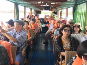 Đoàn bắt đầu đi thăm Trà Sư, rừng tràm nổi tiếng mùa nước nổi, trên đường đi Tịnh Biên.