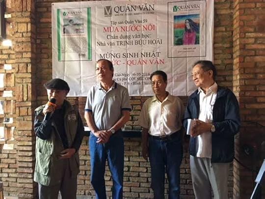 Buổi họp mặt bạn bè kỷ niệm Sinh nhật Quán Văn lên 7 (ngày 16.10.2018), đồng thời cũng là Sinh nhật của bán nguyệt san văn học nghệ thuật Ý Thức, ra đời cách đây 47 năm. Số Quán Văn 59 này giới thiệu một khuôn mặt văn học miền Tây là Trịnh Bửu Hoài ở Châu Đốc, vì thế ngày hôm sau, 17.10. 2018 bạn bè đã làm một chuyến Tây du, “về Long Xuyên Châu Đốc…” cùng Trịnh Bửu Hoài, không chỉ thăm bạn bè văn nghệ mà còn thăm vùng đất phương Nam mùa nước nổi xứ của Núi Sam, của rừng tràm Trà Sư, của Bà Chúa Xứ rồi còn ghé qua Cần Thơ, Trà Vinh, Bến Tre…