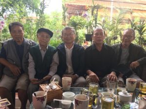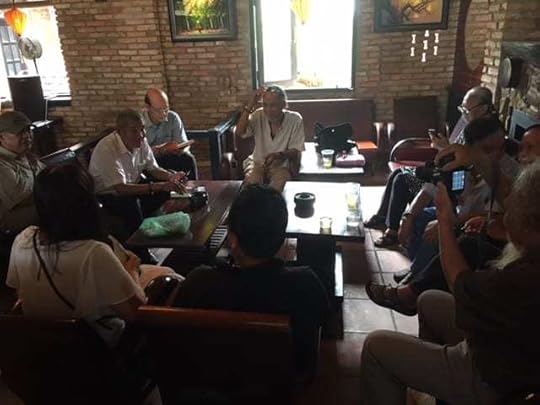 từ trái: Châu Văn Thuận, Nguyên Minh, Đỗ Hồng Ngọc (Đỗ Nghê), Thân Trọng Minh (Lữ Kiều), Lê Ký Thương (cafe Vườn Hồng, Bến Tre 20.10.2018)