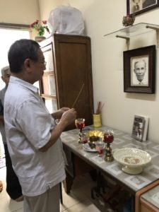 Đỗ Hồng Ngọc thắp nén nhang và đặt cuốn sách vừa tái bản “Nguyễn Hiến Lê, con người và tác phẩm” của một nhóm tác giả gồm Trần văn Chánh, Đỗ Hồng Ngọc, Lê Anh Dũng, Nguyễn Chấn Hùng… lên bàn thờ ông.