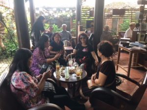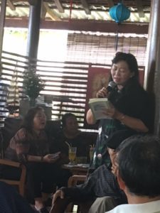 Sau đó nhóm bạn kịp thời về dự buổi giao lưu tại một quán cafe sân vườn rất đẹp ở Long Xuyên. Cảm động vì các bạn trẻ trong Hội văn học nghệ thuật An Giang nói về người đàn anh, người thầy đi trước của mình: nhà văn Trịnh Bửu Hoài. Dịp này nhiều bài thơ, bài hát, vọng cổ đã được trình bày rất hay. Trong đoàn Quán Văn có Elena, người Ý, vợ nhà văn Trương Văn Dân tiếng Việt chưa rành mà điệu ca cổ nào cũng thuộc! Đáng khen TVD!