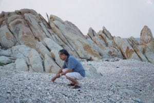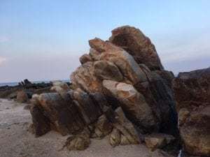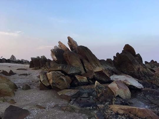 Đi thơ thẩn trong bãi Đá Nhảy hoang sơ này, mình không thể không vóc lên một vóc những vỏ sò, vỏ ốc… để thấy ra những tảng đá hùng vĩ kia cũng là từ những vỏ sò vỏ ốc này mà hình thành đó thôi…